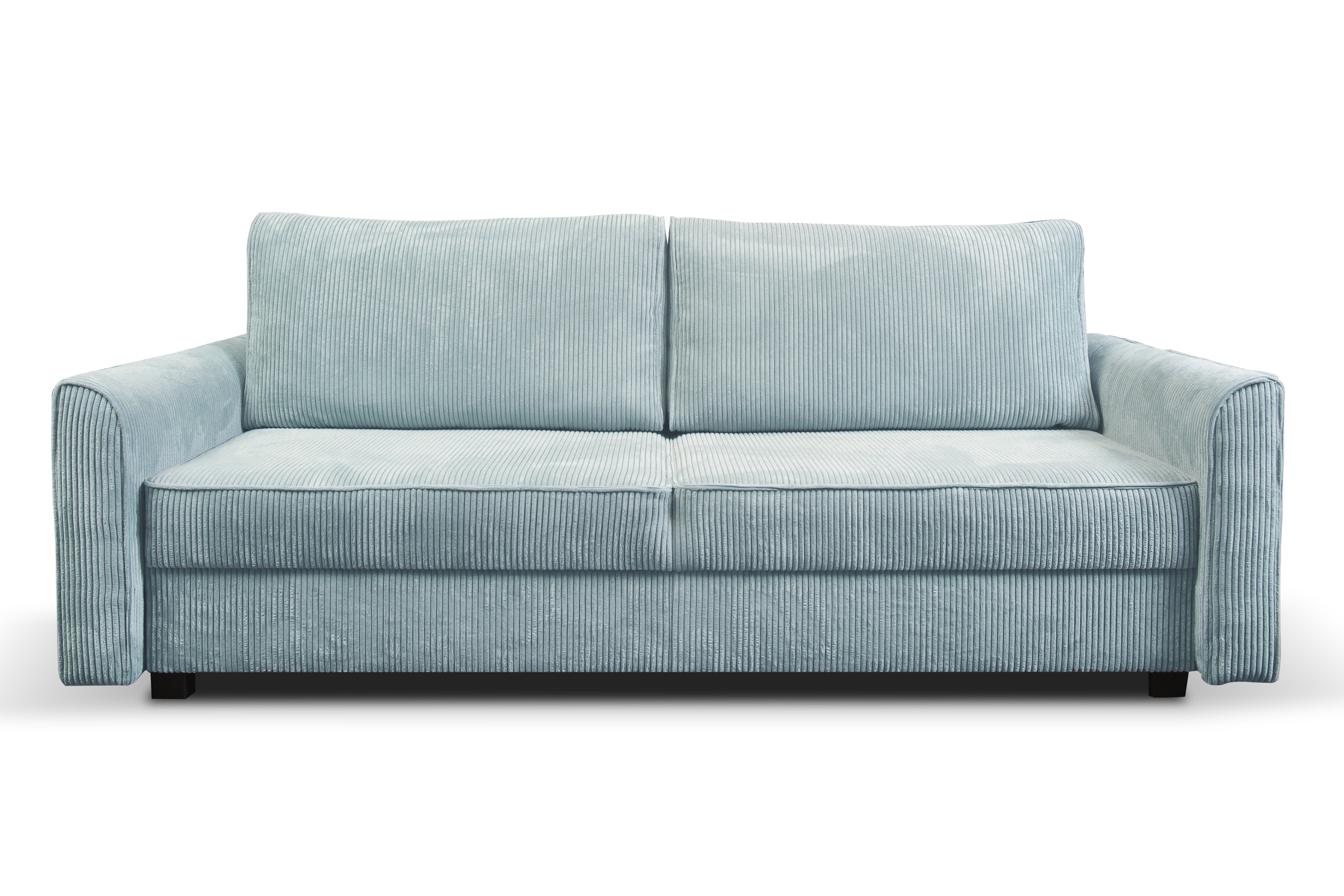 Schon beim ersten Betrachten strahlt das ca. 230 cm breite BENIX Sofa eine behagliche Optik sowie absolute Gemütlichkeit aus - Modell Astoria in einem angesagten Cordbezug. Das Gewand in einem frischen Mintton verleiht dem Einzelsofa eine wunderbar weiche Haptik und setzt zudem einen stilvollen Akzent in Ihrem Zuhause. Außerdem harmoniert dieser perfekt mit den schwarzen Kunststofffüßen, welche das moderne Design gekonnt unterstreichen. Der Bezug entspricht nicht ganz Ihren Vorstellungen? Mit einem Klick auf "Farbe ändern" erhalten Sie eine umfangreiche Stoffkollektion und so können Sie ihn problemlos nach Ihren Wünschen anpassen. Aber auch mit Funktionalität kann Astoria überzeugen: In Sekundenschnelle lässt sich die Sitzfläche nach vorn ausziehen und offenbart einen großzügigen Bettkasten, der genügend Stauraum für Decken, Kissen oder andere Alltagsutensilien bietet. Beim Runterklappen der Rückenlehne schenkt Ihnen der 2-Sitzer eine komfortable Liegefläche von etwa 196 x 148 cm, welche ausreichend Platz schenkt, um kuschelige Stunden mit dem Partner zu genießen oder den Gästen nach einem langen Abend eine Schlafmöglichkeit anzubieten. Astoria aus dem Hause BENIX Polstermöbel ist weit mehr als nur ein Möbelstück, es ist ein stilvoller Blickfang im Wohnzimmer und ein Ort zum Wohlfühlen, Verweilen und Träumen.