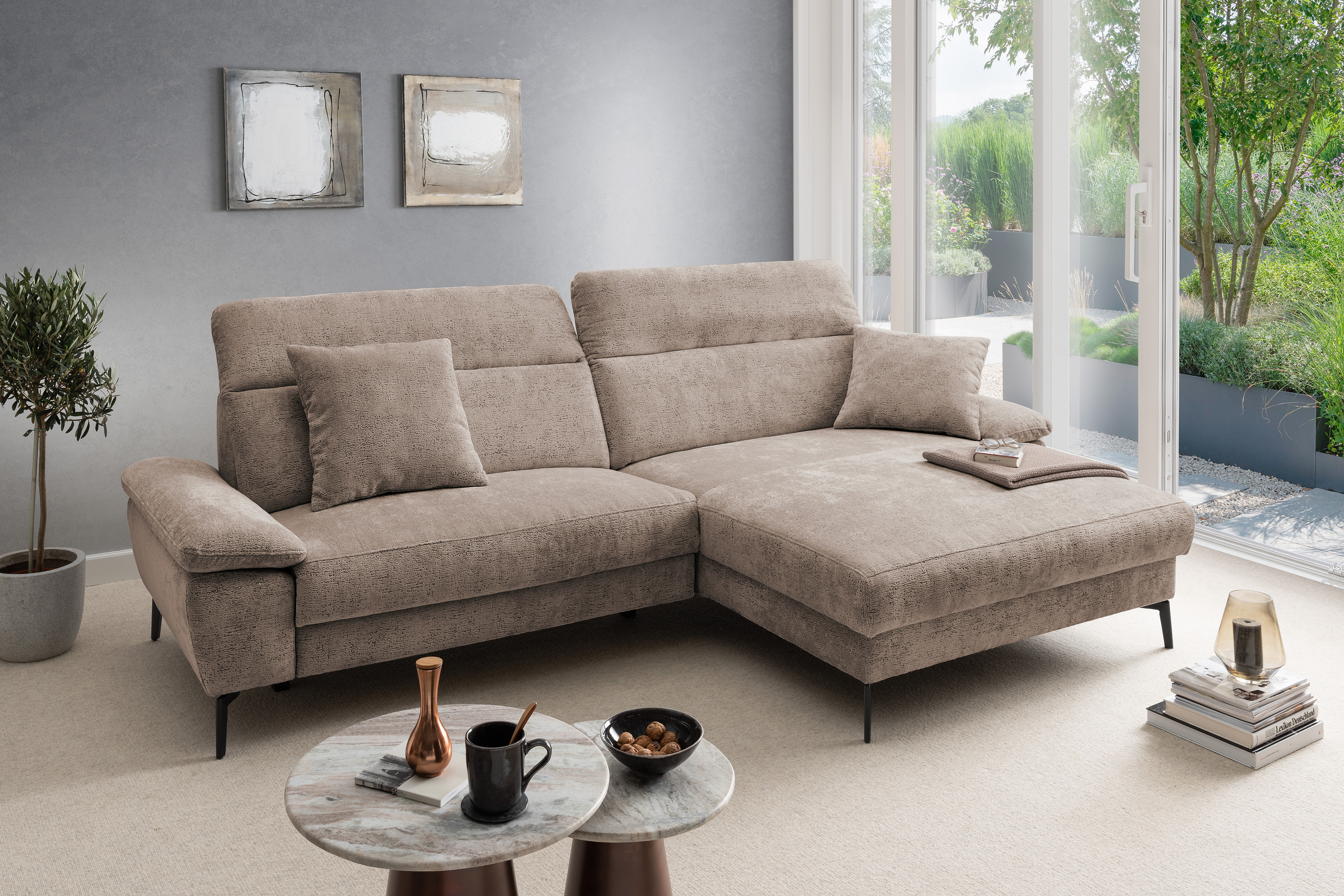 Stellen Sie sich vor, Sie kommen nach einem langen Tag nach Hause, Sie lassen sich fallen und der Stress des Alltags bleibt einfach draußen. Die moderne Eckgarnitur Cancelli von Benformato ist nicht einfach nur ein Möbelstück, sie ist Ihre persönliche Wohlfühloase. Ganz gleich, ob ein geselliger Wein-Abend mit Ihren liebsten Freunden ansteht oder Sie den perfekten Serien-Marathon planen: Auf der großzügigen Zusammenstellung aus einem 2-Sitzer mit anschließender Recamiere findet das Leben statt. Die hochwertige Federkern-Polsterung fängt Sie sanft auf und bietet einen Sitzkomfort, der Sie den Alltag vergessen lässt. Passen Sie die Kopfteile mit einem einfachen Handgriff genau an Ihre Bedürfnisse an und spüren Sie, wie sich die Anspannung löst. Sie möchten den absoluten Luxus? Gönnen Sie sich das Upgrade auf die elektrische Relaxfunktion im 2-Sitzer. Ein Knopfdruck genügt, und Sie gleiten sanft in die wohltuende Herz-Waage-Position. Ihre Beine ruhen auf einer Höhe mit Ihrem Herzen - ein Gefühl von Schwerelosigkeit, das Ihren Kreislauf spürbar entlastet. Eingehüllt in ein kuschelweiches Chenille-Flachgewebe, verleiht die Garnitur Ihrem Wohnzimmer eine unwiderstehlich behagliche Atmosphäre. Und weil Ihr Zuhause so individuell ist wie Sie: Wählen Sie aus einer riesigen Farb- und Stoffkollektion genau das Design, das Ihr Herz höherschlagen lässt. Schaffen Sie sich den Rückzugsort, den Sie verdienen. Holen Sie sich die Cancelli von Benformato nach Hause.
